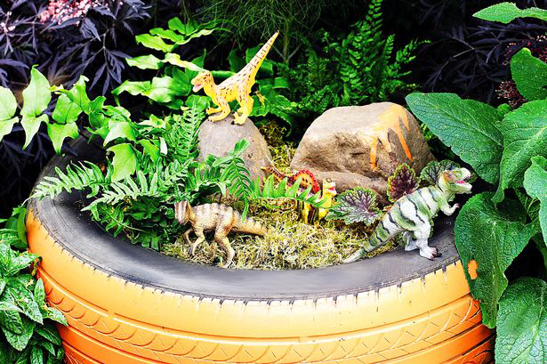Всичко, която ви трябва, е стара автомобилна гума, леген или някакъв друг съд, в който да засеете растения съвместно с децата. Можете да комбинирате няколко различни вида растителност, както и да добавите екзотични видове, за да се получи ефектът на джунглата. Положителен момент тук е създаването на чувство за отговорност у малките собственици на “джунглата”, които трябва сами да се погрижат за отглеждането и поддържането на растенията. Накрая трябва само да поставите фигурки на динозаври или други животни и джунглата от анимационните филми и компютърните игри ще оживее! 🙂