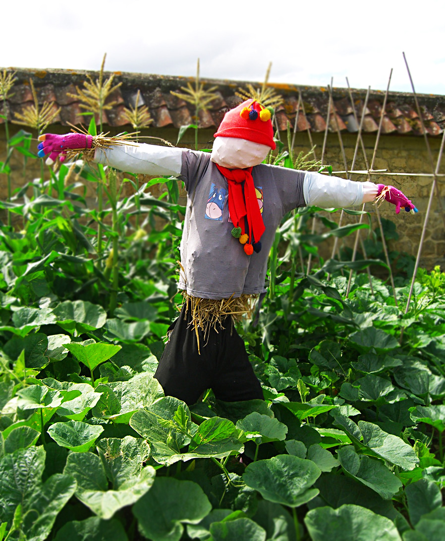 Дори и да няма какво и от кого да пазите, самото създаване на плашилото ще бъде много интересно за по-малките деца. Те могат да го облекат в стари или омалели вече дрешки и така новият им въображаем приятел, който пази цветята, ще носи нещо, подарено от тях самите.